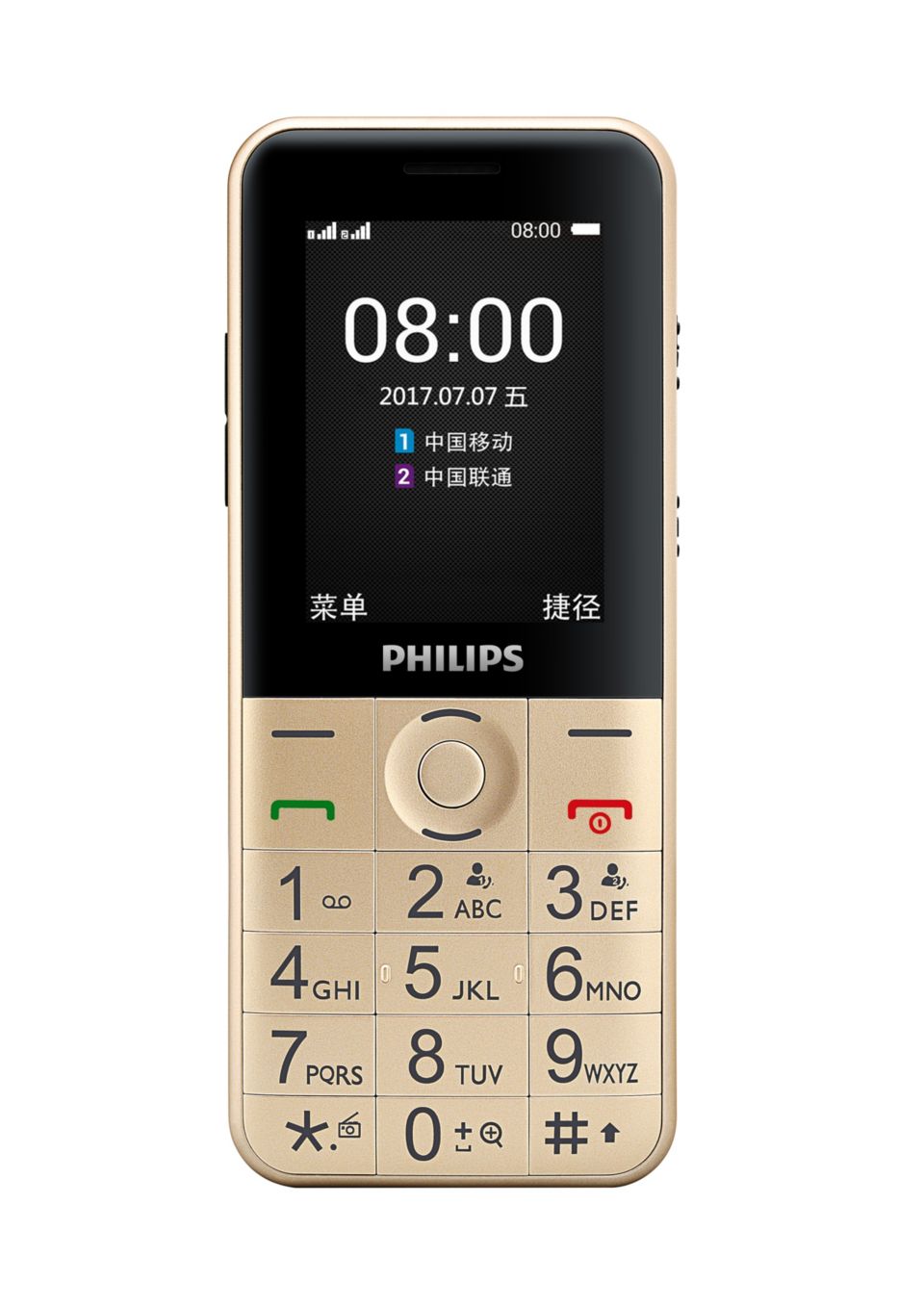 飞利浦手机具有大键盘和大字体,使您拨号或发短信更加舒适便捷。得益于其大尺寸显示字体,您现在可以舒服地阅读屏幕上的文字,而不会伤害您的眼睛。