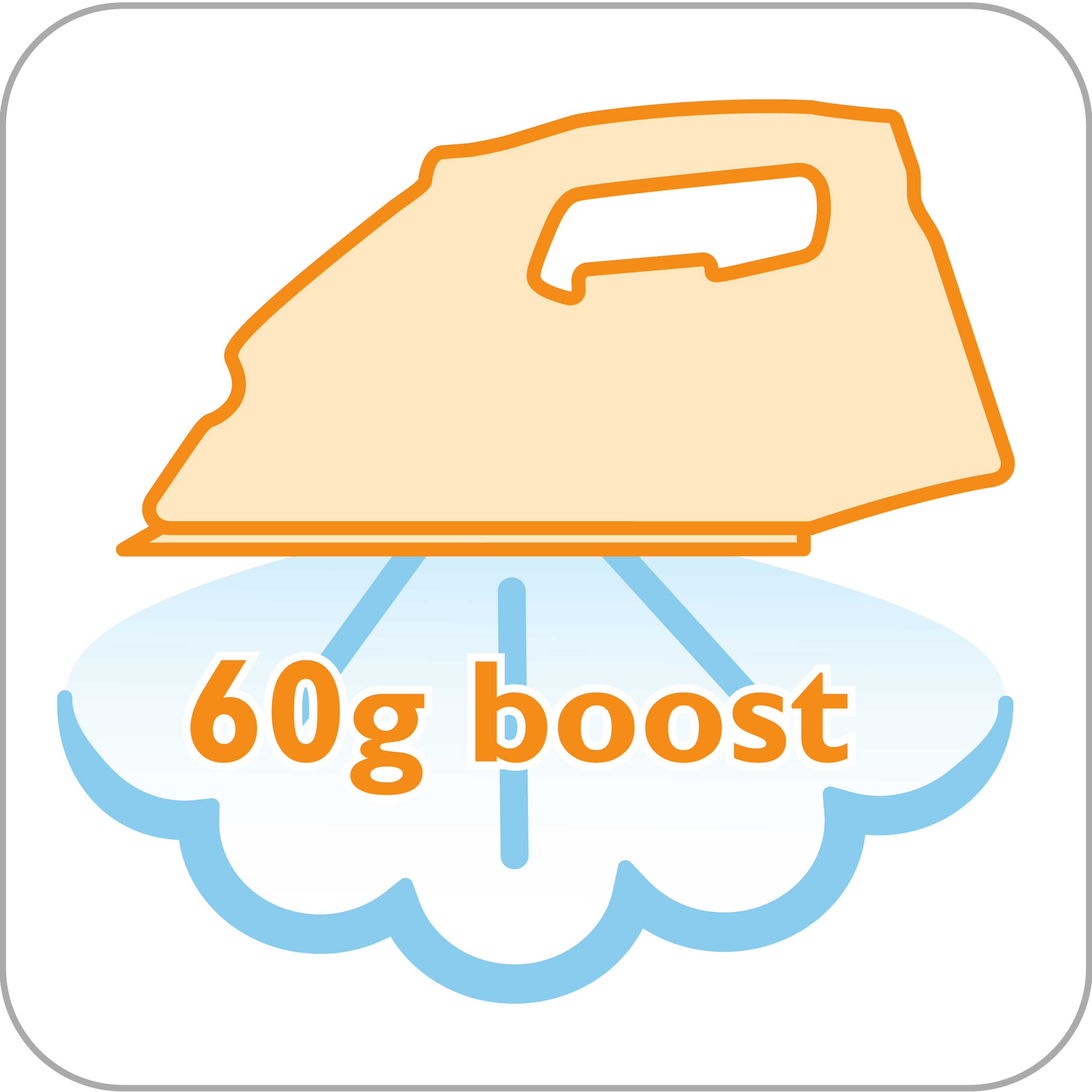 熨斗具有 60 克蒸汽束喷射,轻松去除顽固皱褶。