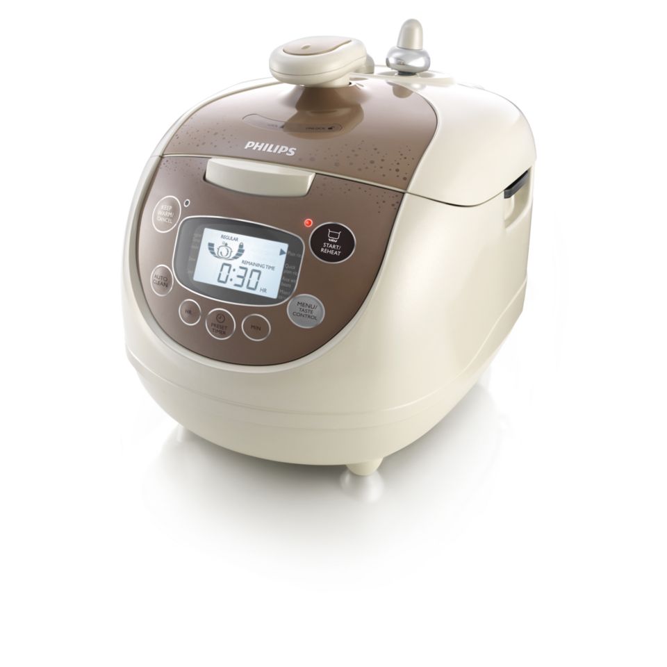 蒸汽压力最高可达 1.80 千克/平方厘米,压力式烹饪可增高沸点温度(高达 116°C),这样可以更好地锁住食物的味道。它能够确保将所有类型的米饭和食物彻底煮熟,即便是坚硬的大豆和大块的肉也不例外。由于缩短了烹饪时间,食物中将保留更丰富的营养
