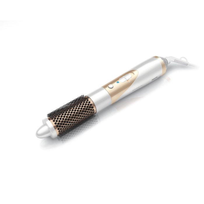 这款美发造型器使用方便,集造型梳和卷发器于一身。只要按一下按钮,梳齿就会缩回到发梳中,让您顺利从秀发上取下造型器。最适合打造动人且有弹性的卷发造型。